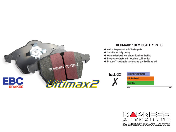EBC Ultimax™ OEM Replacement Brake Pads are designed to match the exact dimensions of original equipment with extremely tight tolerances to ensure proper fit, even wear, and absence of rattles and squeaks.