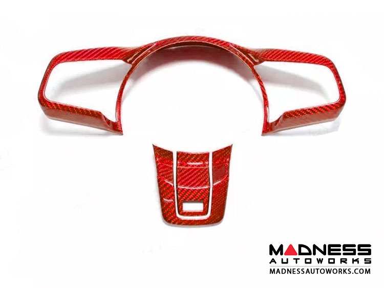 Jaguar F-TYPE Interior Trim - Carbon Fiber - Steering Wheel Trim - R - Flat Bottom Style Wheel - Red Candy